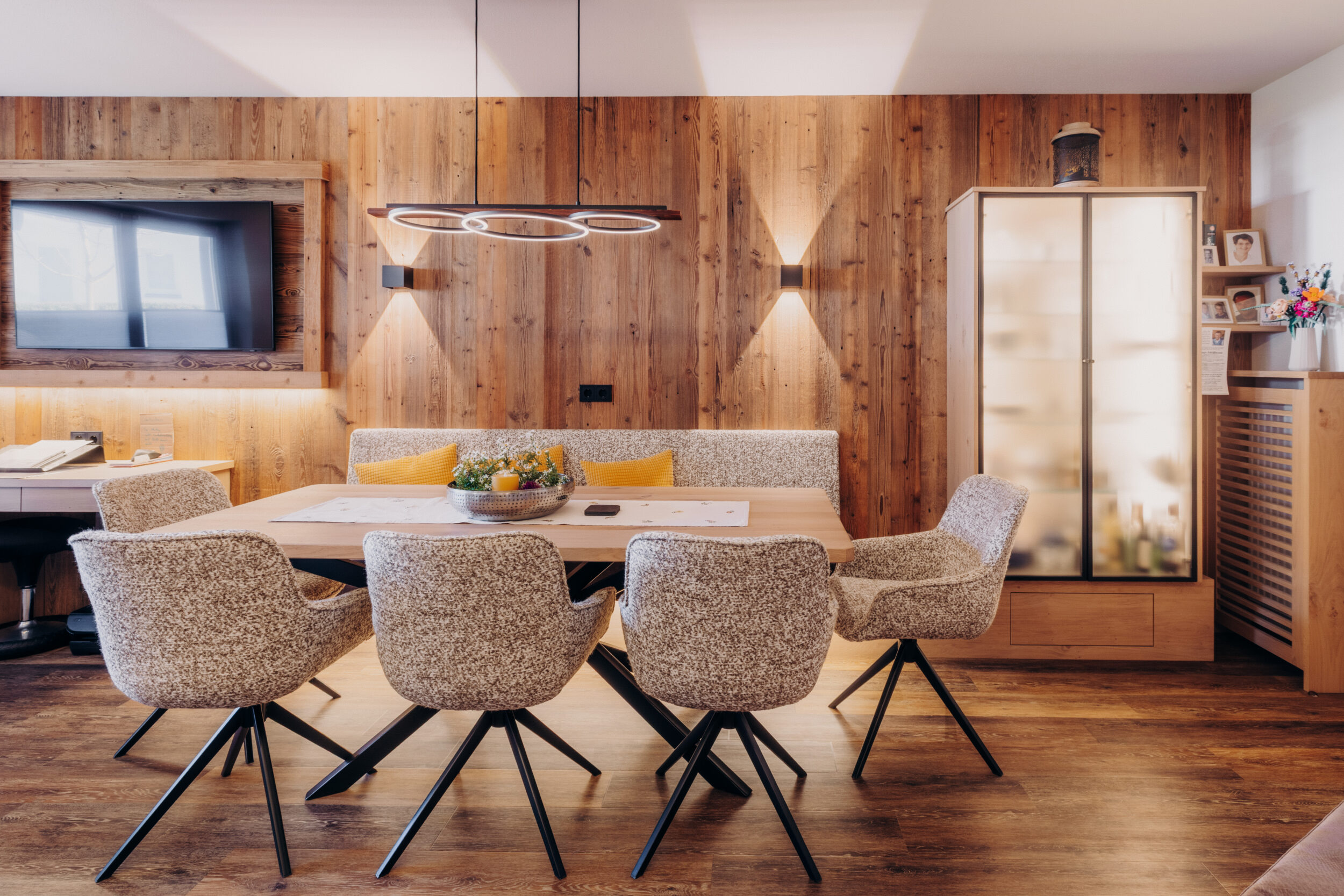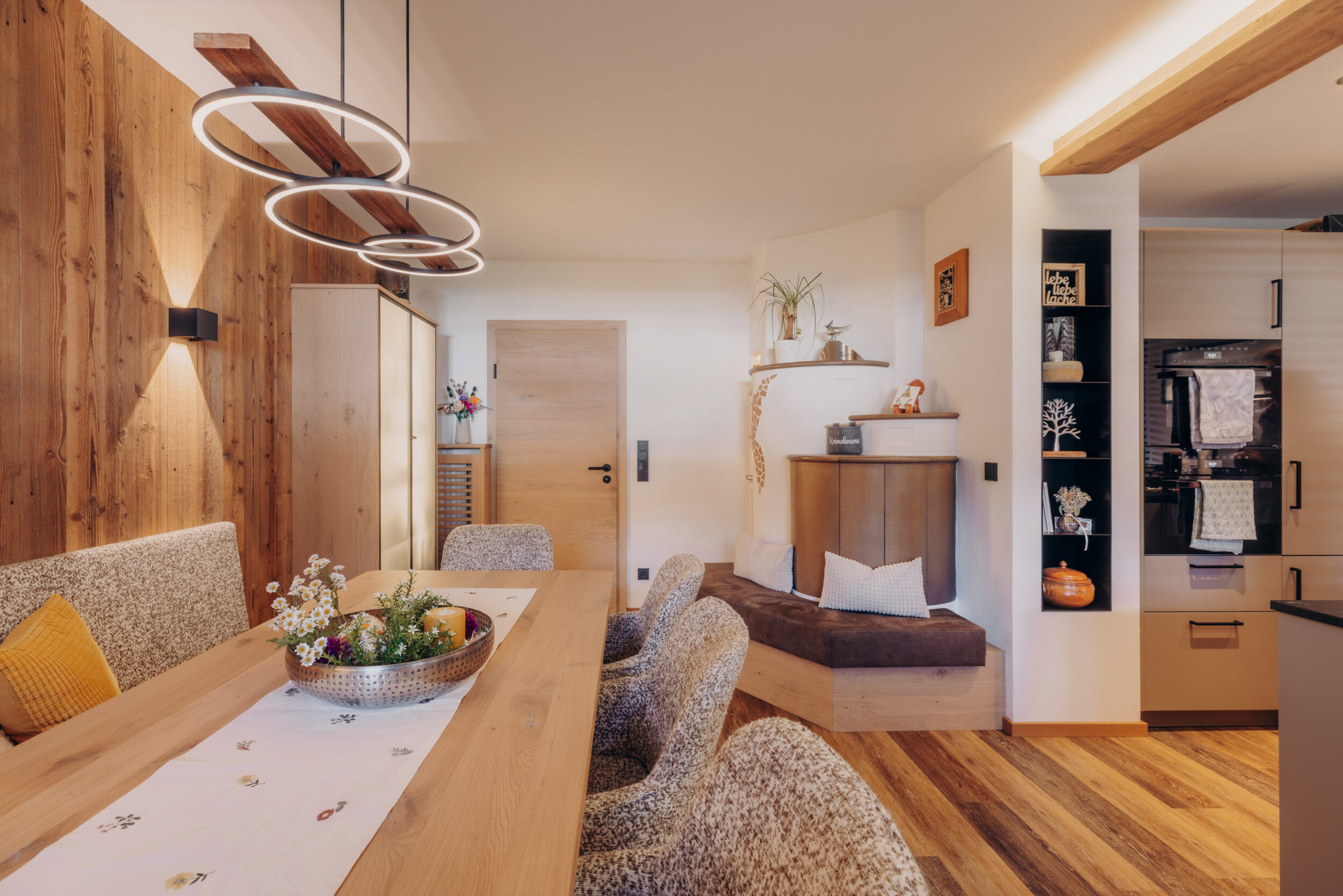 Bei unserer Kundin Petra Haas in Brixen in Tirol wurde der Raum grundlegend neu gedacht. Durch den Abbruch der Zwischenwand ist ein offener Wohn-,