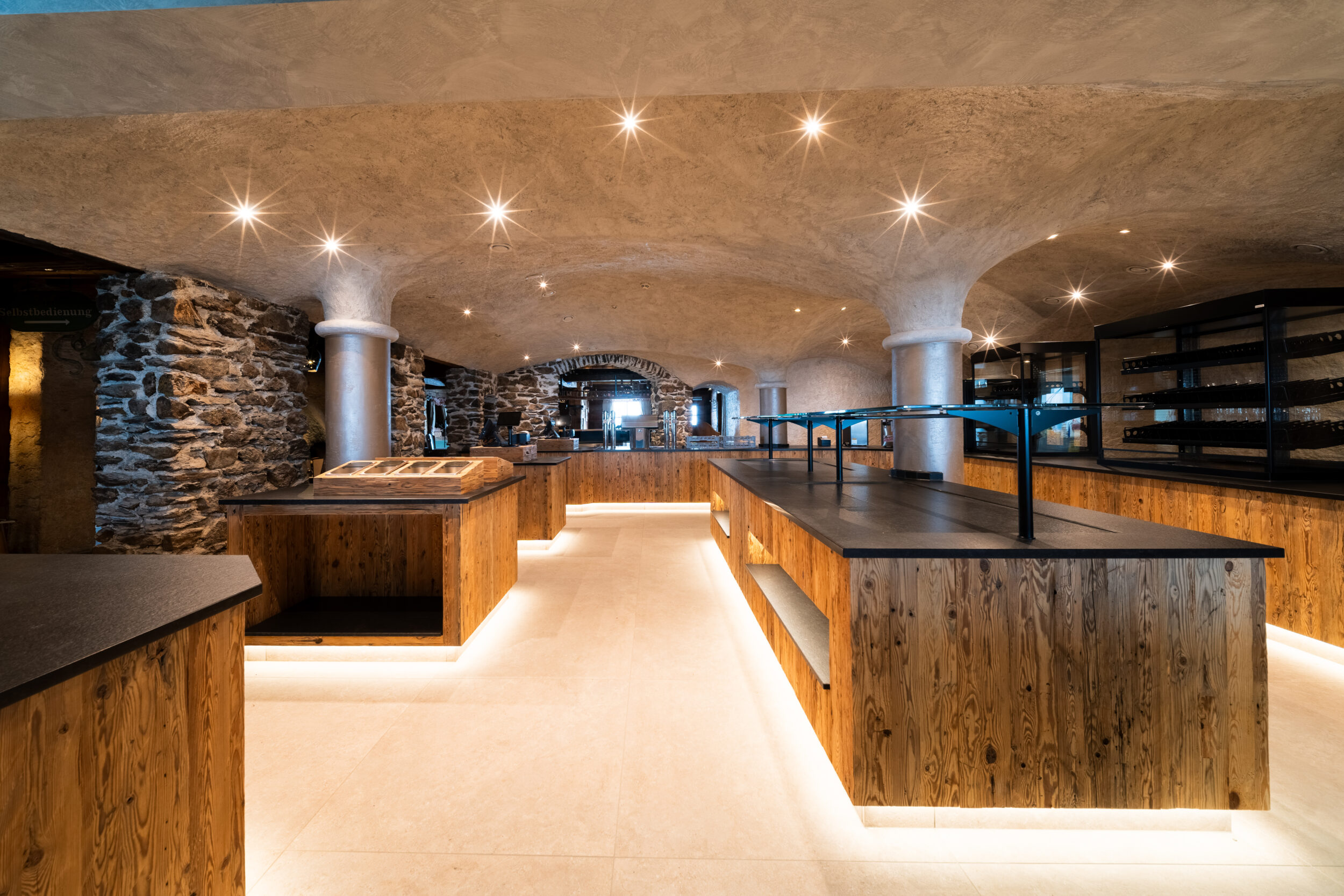 Auf fast 2.000 Metern Seehöhe haben wir der Panoramaalm ein gewaltiges Upgrade verpasst. Projektleiter Manuel Wildhölzl hatte dabei alles im Griff – von der genauen Planung und Materialauswahl bis zum zeitlichen Ablauf. Von der neuen Rezeption über den SB-Bereich und die Küche bis hin zum Damen-WC: Unsere Fliesenleger, Tischler und Tapezierer haben Hand in Hand gearbeitet, um alles in höchster Qualität umzusetzen.